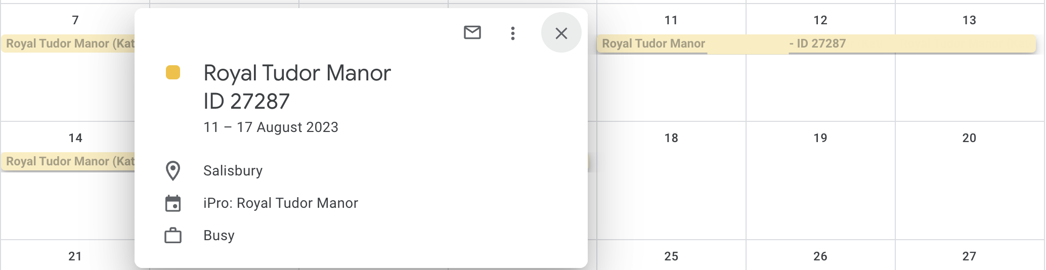 - Calendar Status: Marked as 'Busy'.