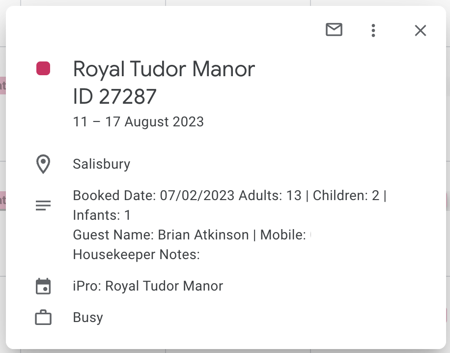 This calendar can be shared with the owner or housekeepers as it will contain important guest information.