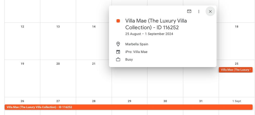 This calendar will only share bookings and blockouts generated by iPRO, ensuring there is no confusion when importing multiple calendars.