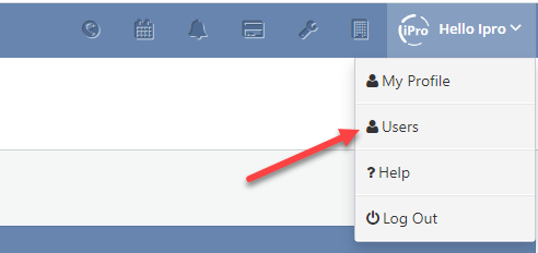This will give you access to the 'Users' menu on the upper right corner of the iPro back office: