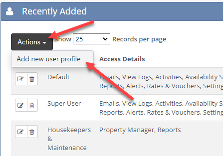 We recommend that you have 'User Profiles' configured for each team or department i.e. Sales, Customer Services, Owners Team, Accounts, Finance, Management, Housekeepers and Maintenance.