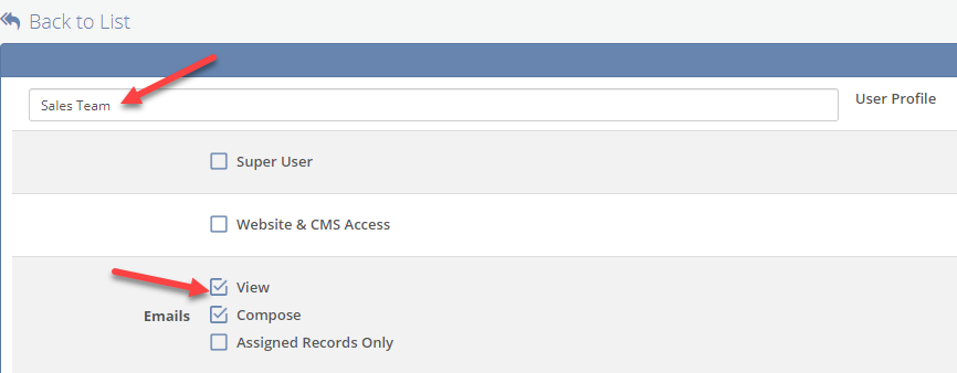 5/ Assign a profile name and tick the corresponding boxes against the permissions allowed for the purpose of this user profile: