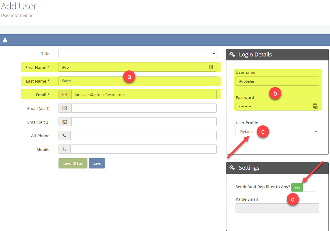 User & User Profiles define what parts of the system each person has access too and will determine what data they can see once logged in to iPro.
