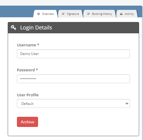 6/ If a user account is no longer needed you can delete it, but this will remove it from the system altogether, which includes removed the user from being the assigned contact on bookings or enquiries. You may therefore want to archive the user instead. This will deactivate the user so that they can no longer log in and are no longer counted against the number of users allowed by your iPRO licence, but keeps the details of the user in place on any existing bookings, enquiries, bills or tasks. To archive a user select the option to edit their account and click the Archive button in the login details panel.