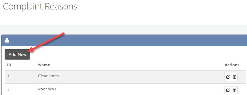 3/ To add a new complaint reason, click the 'Add New' button on the upper left corner:
