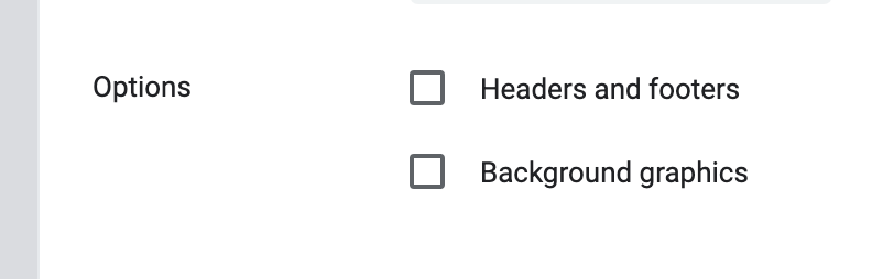ii. Ensure that 'Print Backgrounds' and 'Print Headers and Footers' are unticked.