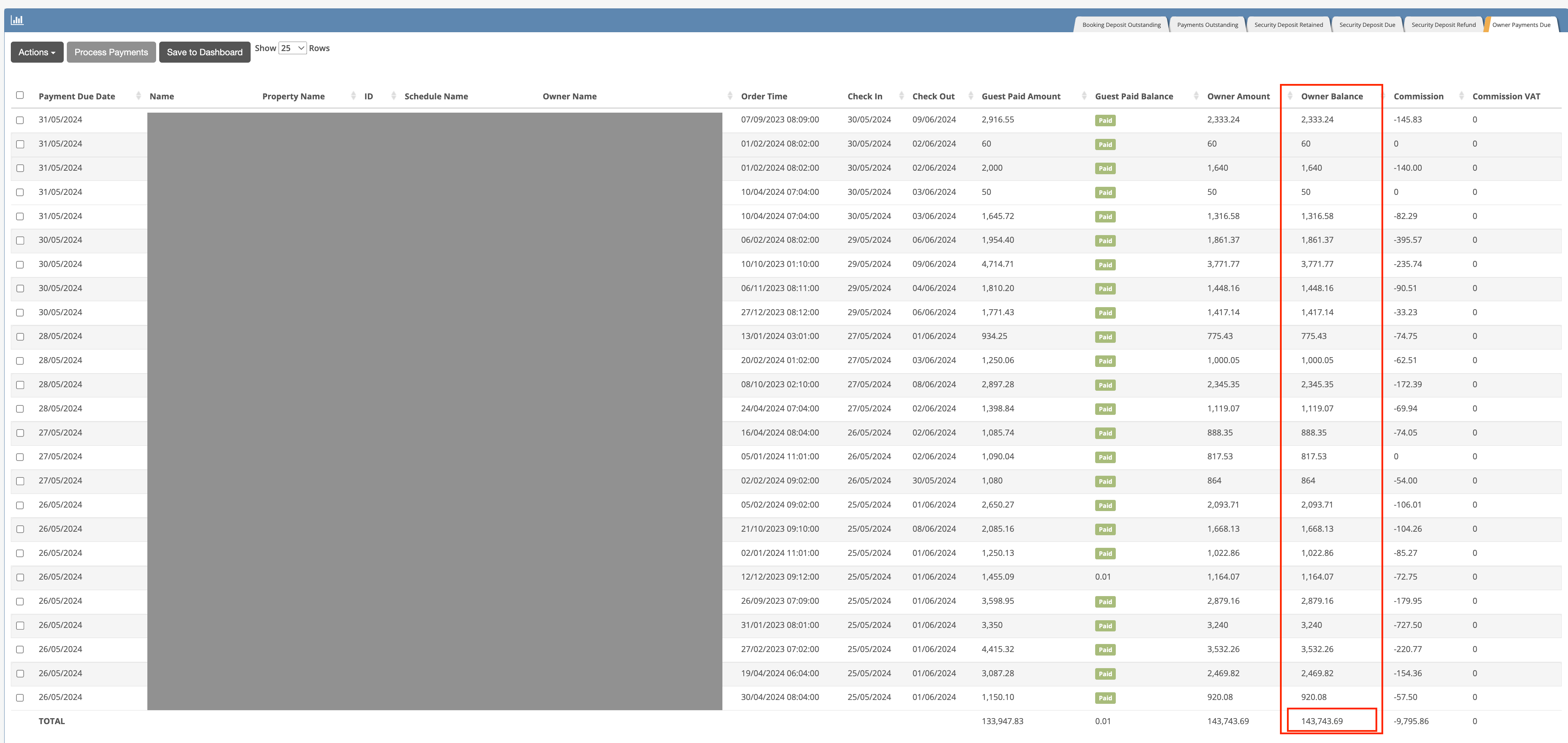 At this point, you will see a comprehensive list of bookings that are due to be paid to owners for the current month.